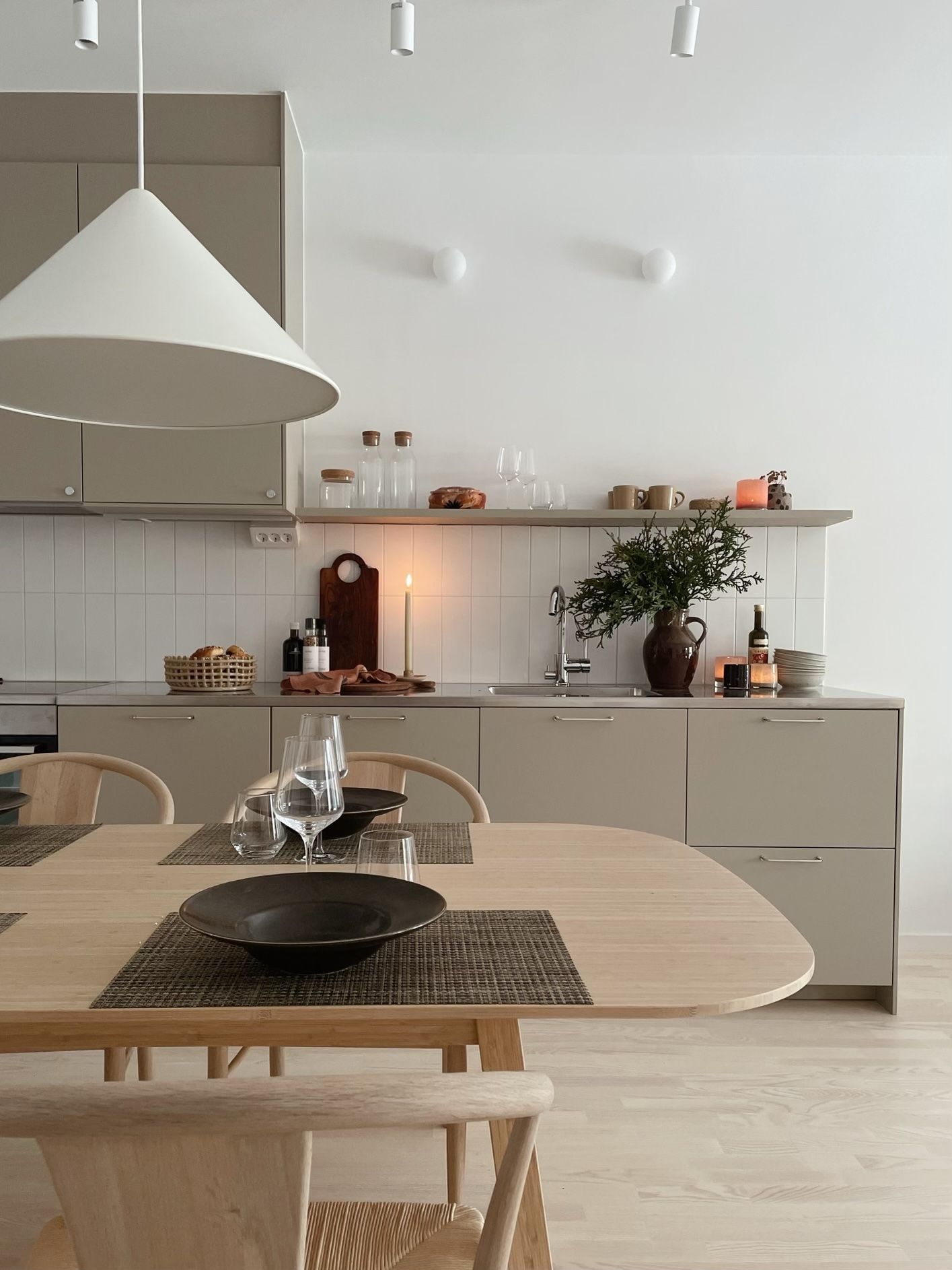 På entréplanet finns ett större badrum med dusch, tvättställ och wc samt tvättmaskin och torktumlare som går att dölja bakom textil på skena. Rummet har ett fönster med insynsskydd som släpper in ett vackert dagsljus. Materialen är klassiska med vit inredning och vitt stående kakel samt ett klinker i granitkeramik.